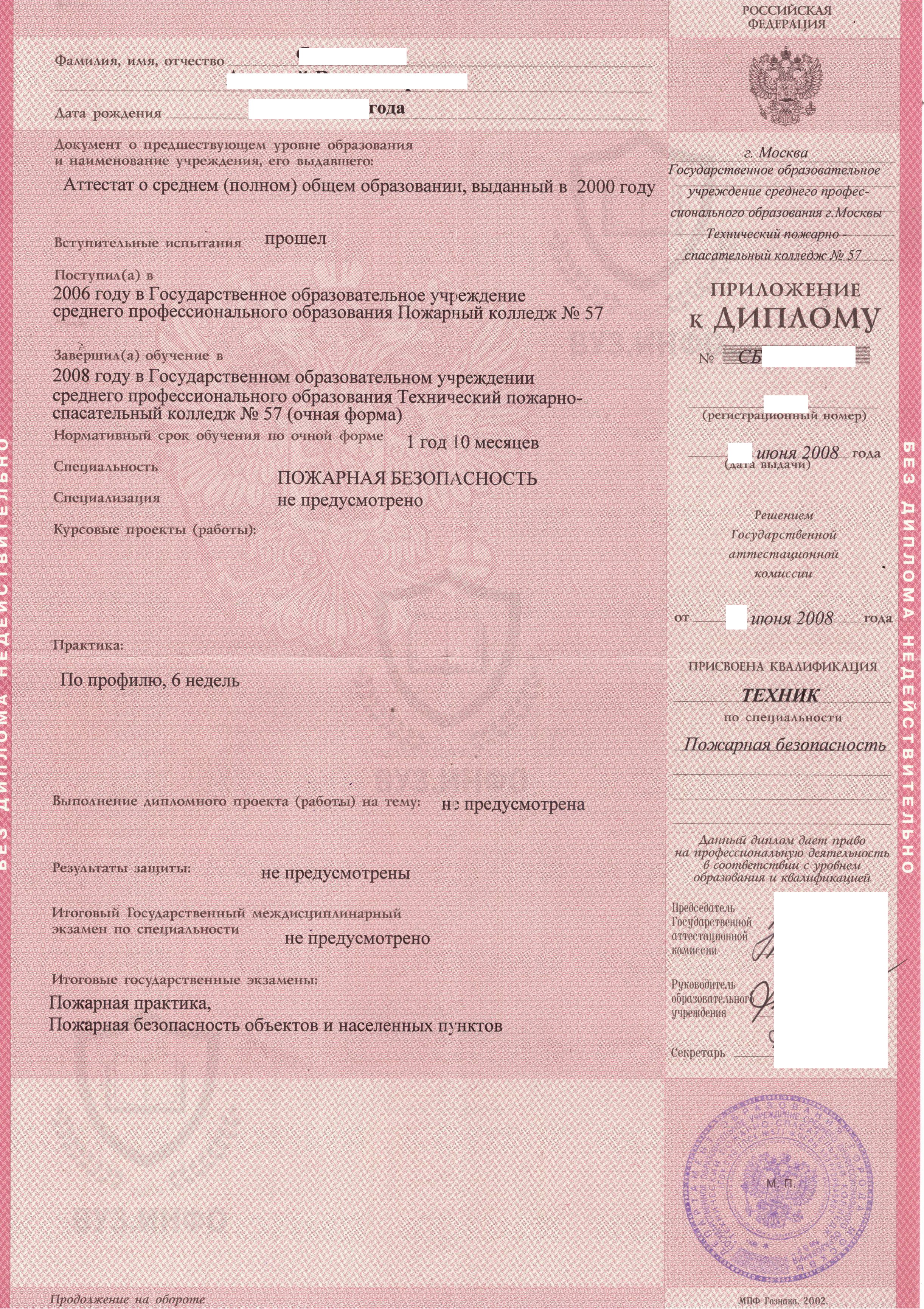 Образцы реальных дипломов колледжей и техникумов 2002-2007 года
