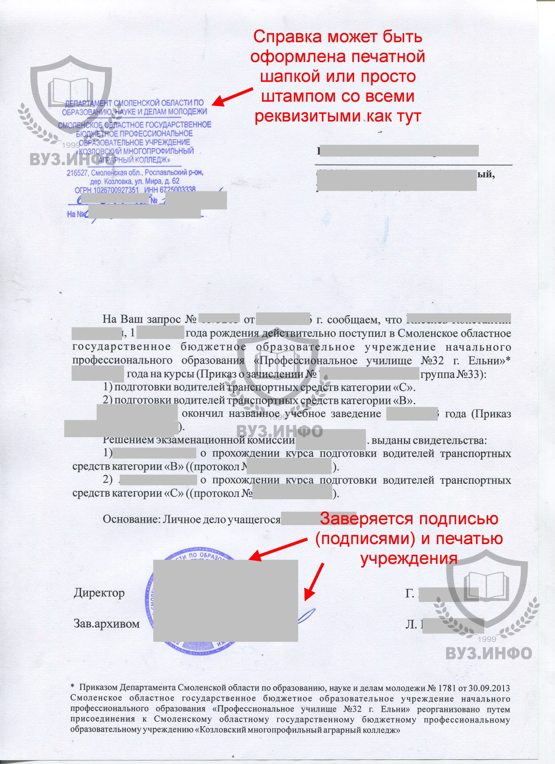 Интересно что в данном учебном заведении по-старинке ставят штамп вместо печатной «шапки».