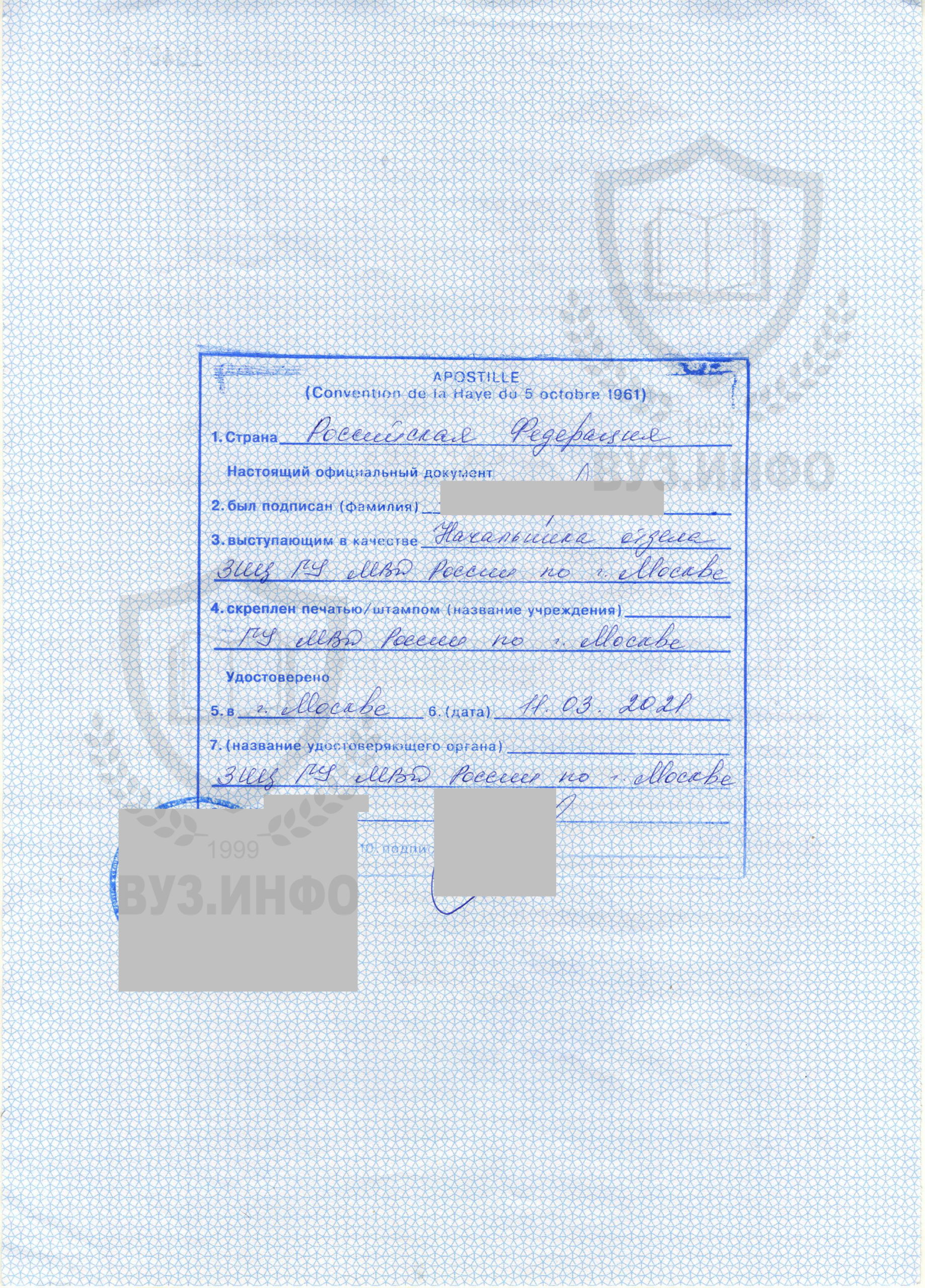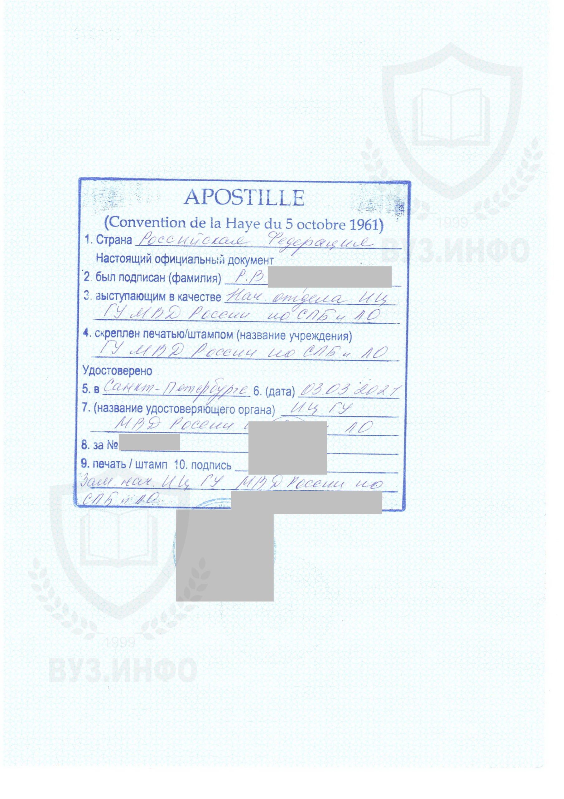 Апостиль на справку о несудимости от Информационного центра ГУ МВД по г. Санкт-Петербургу и Ленинградской области